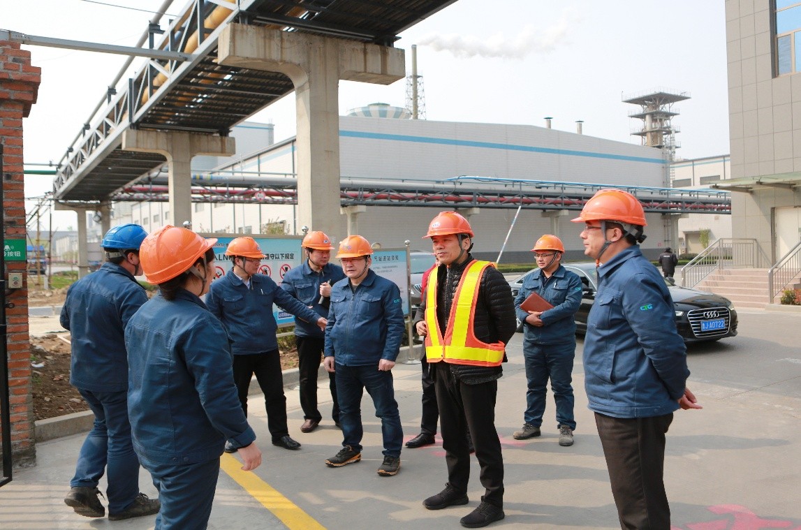 中材科技安環部部長安儒波,泰山玻纖生產計劃、安全環保、設備動力部等相關部門負責人參加檢查。