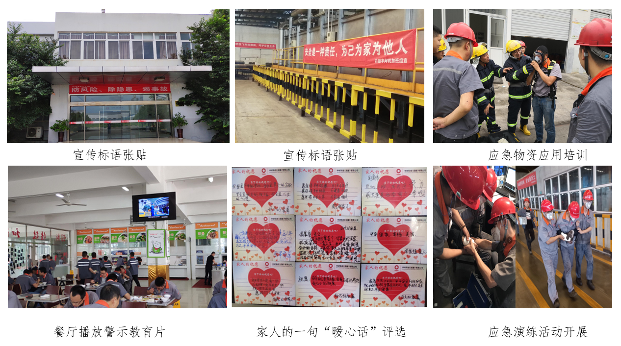 本次安全月活動內容豐富,除了在辦公樓、車間醒目位置張貼安全生產月主題橫幅、宣傳標語,組織安全培訓,通過視頻學習、受限空間應急處置、機械傷害應急處置、鍋爐房缺水應急處置等一系列應急演練、安全隱患互查、安全知識競賽等活動外,還特別突出了安全文化,將安全文化更好與企業文化、黨建文化結合。