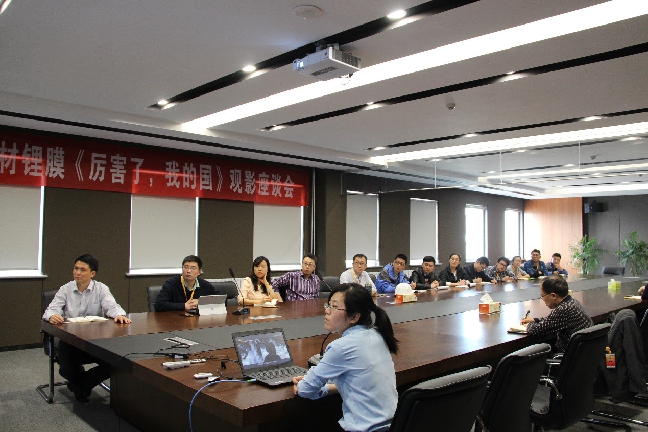 - 近日,大型國產紀錄片《厲害了,我的國》全國放映,中材鋰膜黨總支組織全體黨員觀看影片并召開座談會,暢談觀影感受。