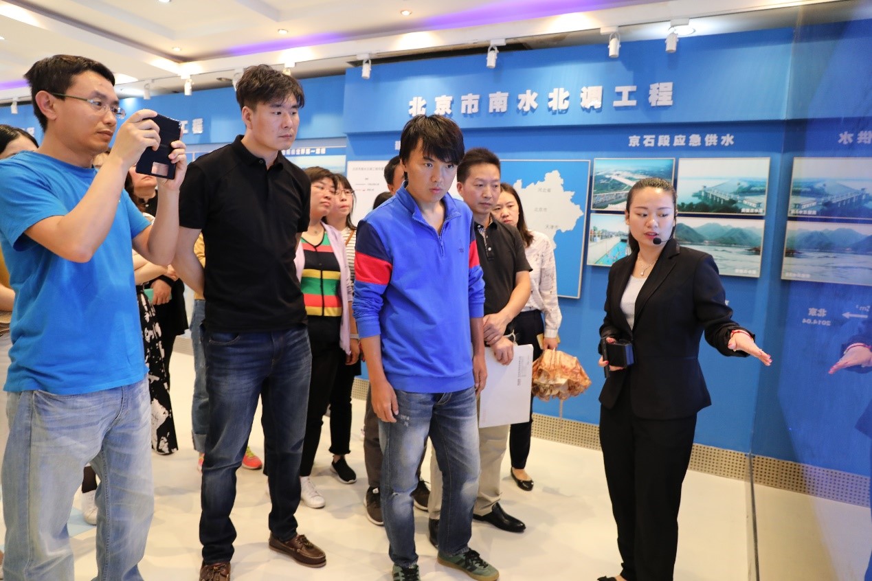 初夏時節(jié),群芳吐艷、桃紅柳綠。中材科技總部的黨員干部職工自駕車從總部辦公地點出發(fā),來到位北四環(huán)旁的南水北調(diào)中線工程終點的團城湖實地參觀。停好車后,大家井然有序排列整齊,在講解員的引導(dǎo)下來到南水北調(diào)展覽館。在展室內(nèi),大家認真聆聽講解,講解員用一組組數(shù)據(jù)全面展示了南水北調(diào)工程的歷史沿革,并重點講解了南水北調(diào)中線工程特別是北京段的建設(shè)情況。中線工程全程1276公里,起自長江支流漢江的丹江口水庫,沿京廣鐵路西側(cè)北上,跨越河南、河北、天津、北京四省市,終點為北京的團城湖。規(guī)劃分兩期實施,一期工程年均調(diào)水83.4億立方米。其中北京段工程全長80公里。通水后,北京年均接收丹江口水庫來水凈水量10.5億立方米,北京水資源嚴重短缺形勢得到了有效緩解。如今北京市飲用水50%以上來自南水北調(diào)工程。在聆聽講解的過程中,黨員們還針對南水北調(diào)工程投資、水價構(gòu)成、管理體制、工程建設(shè)規(guī)劃、工程建設(shè)難點等問題與管理處工作人員進行了交流。黨員們不僅被一組組的數(shù)據(jù)、一個個實例打動,更對南水北調(diào)背后的艱辛的付出感動,同時也油然而生對這個偉大的工程的贊嘆之情。