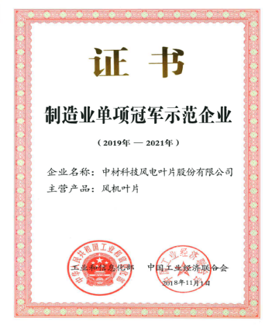 中材葉片2007年成立以來,聚焦客戶需求,秉承以科研成果轉化為突破口,堅持研發創新,積極發揮科研院所的創新基因優勢。公司管理層強化經營理念、持續錘煉經營能力,全體員工凝心聚力深耕行業12載,實現全球累計裝機量超過42GW,產品覆蓋全球20個國家和地區。實現市場占有率連續11年保持增長、連續8年保持中國第一,2015年市場占有率首次躍居全球第一業績。2018年公司被國家信息化與工業部授予中國制造業單項冠軍“示范企業”的榮譽。中材葉片已成為風電葉片領域的全球“知名企業”。