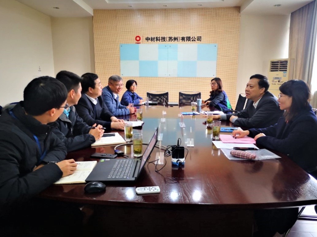 - 1月9日,中材科技黨委書記宋伯廬到蘇州有限調研指導工作,蘇州有限班子成員參加調研匯報。