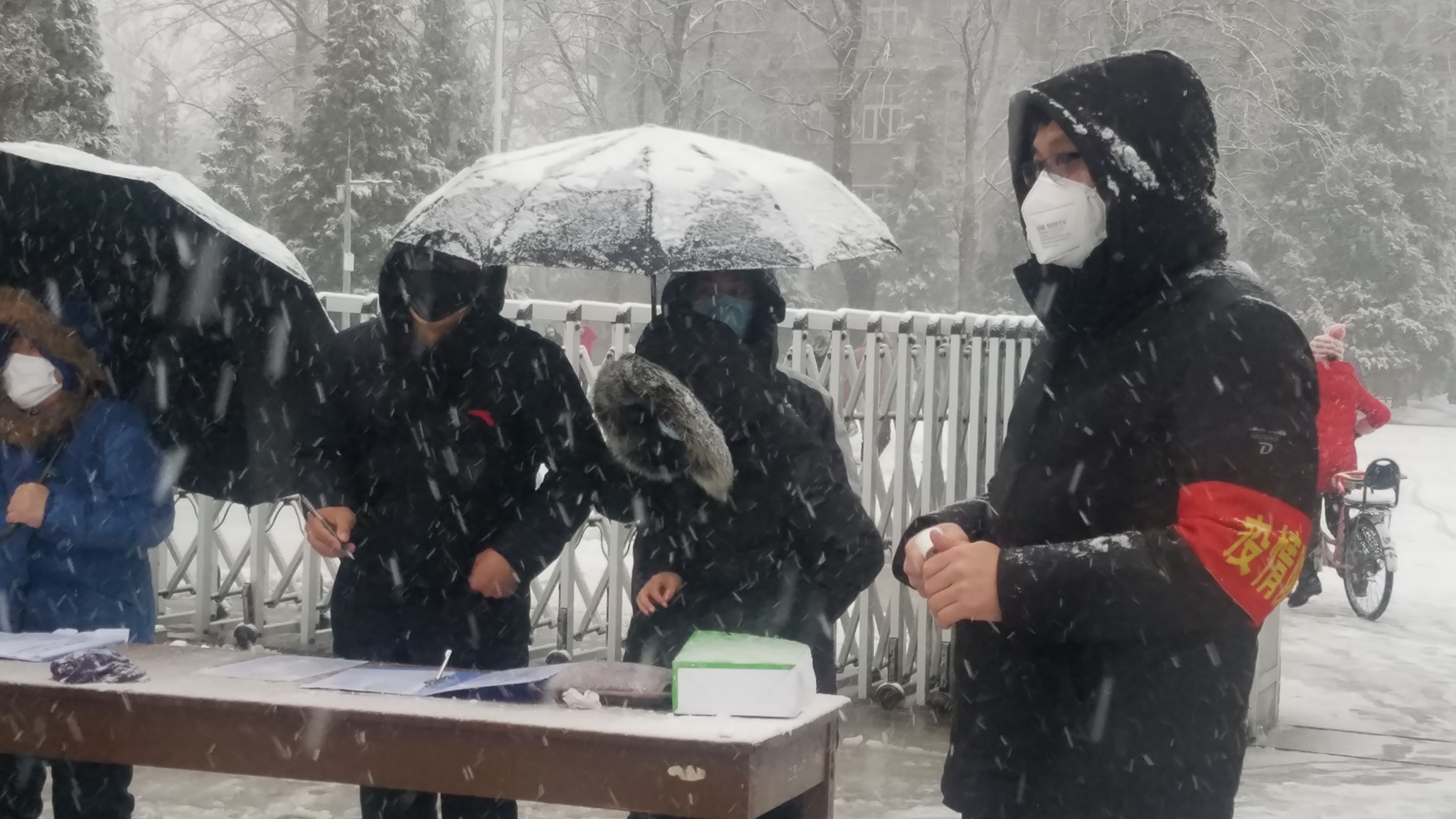 - 2月14日,一場雪雨突如其來,北風伴著春雨,低溫連著雨雪,天地瞬間變成銀裝素裹,面對氣溫驟降、雪雨交加的惡劣天氣,北玻院廠區疫情防控點的黨員干部不畏雪雨,依然同往常一樣堅守崗位,嚴防嚴控,認真有序對單位員工進行上崗前測溫與登記,筑牢織密疫情防控網,雪雨淋濕了他們的衣裳,毫無顧忌,他們說,防控就是責任,身為一名黨員,關鍵時刻我們要走在疫情防控的最前沿,不管天氣有多惡劣,我們一定值好班、站好崗,把好關。初心在風雪中堅守,使命在嚴寒中擔當,他們沒有別的奢求,只希望用自己的努力守護著員工的安康。此時此刻,望著他們迎雪雨、戰嚴寒、嚴排查的身影,頓生敬意與感動,他們就是雪雨中防控疫情最美的風景線,有他們的堅守、奉獻與擔當,北玻院一定能打贏疫情防控阻擊戰。