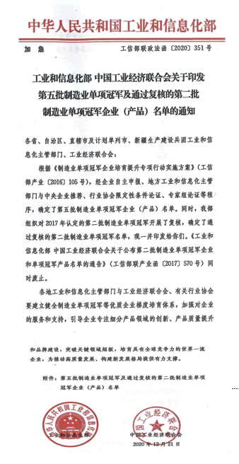 據(jù)了解,制造業(yè)單項冠軍被譽為“制造業(yè)皇冠上的明珠”,是指長期專注于制造業(yè)某一特定細分產(chǎn)品市場,生產(chǎn)技術或工藝國際領先,單項產(chǎn)品市場占有率位居全國甚至全球前列的產(chǎn)品。制造業(yè)單項冠軍產(chǎn)品的申報與獲獎標準異常嚴苛,經(jīng)公司自主申報,北京市工業(yè)和信息化主管部門推薦、行業(yè)協(xié)會限定性條件論證、專家組論證等程序,就市場占有率、科技創(chuàng)新、經(jīng)濟效益、產(chǎn)品質(zhì)量、國際化程度等多重指標的考核和篩選,最終摘得制造業(yè)單項冠軍產(chǎn)品大獎。