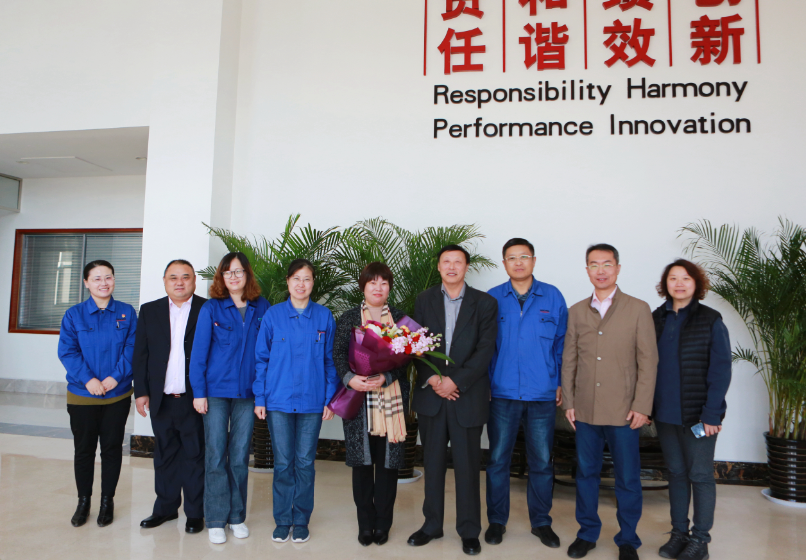 10月29日,在大會閉幕后趙麗載譽歸來,公司工會主席王吉俊代表公司黨政領導班子以及公司工會、人力資源部、辦公室、銷售部等部門代表在技術中心一樓大廳舉行了熱烈的歡迎儀式。