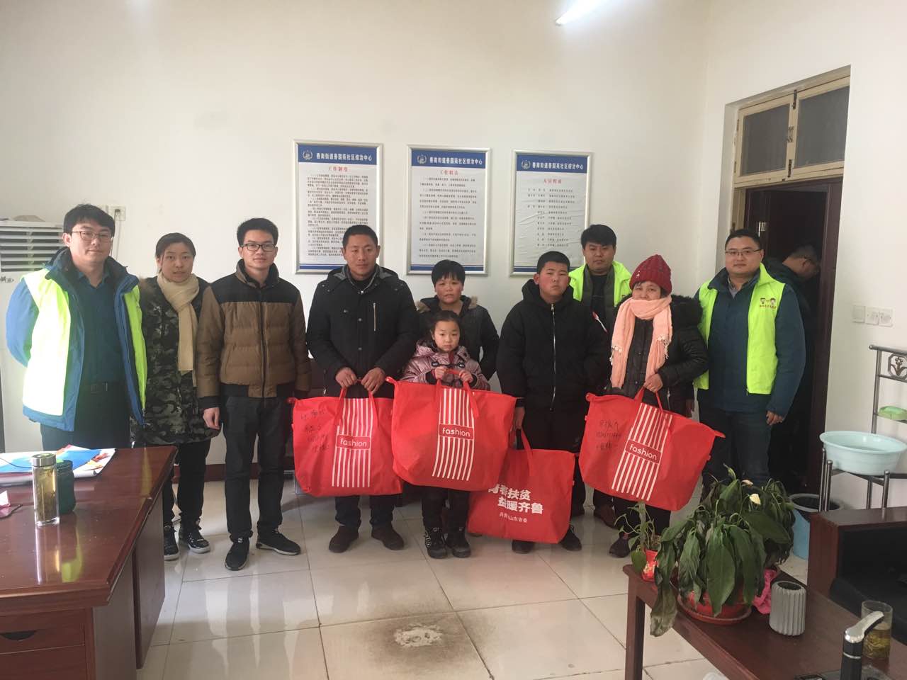 1月25日下午,青年小分隊首先來到善國苑社區中心,為社區建檔立卡的貧困兒童及留守兒童送上由棉衣、棉褲、棉帽、手套、圍巾等組成的“暖冬包裹”,并逐一了解幫扶兒童的家庭情況,確定后續幫扶措施。隨后,青年小分隊來到十里鋪社區困難老人家中,為老人送去了生活物資,詳細了解老人的生活近況,并送上節日的祝福。